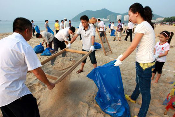 享受阳光沙滩、海浪美景的同时,不要忘记给美丽的大角湾做个大扫除哦,加入环保大行动,为保护海陵岛出一份力,传播青春正能量!